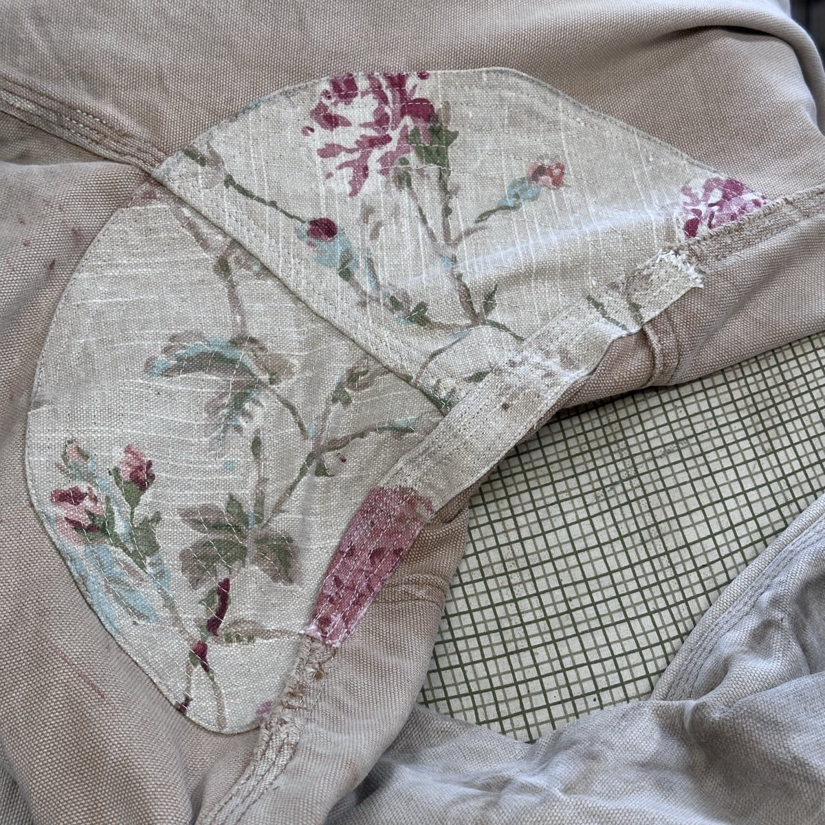 Finally, the earthworms no longer have to blush with shame when I crawl around in the garden 😬 It was about time for this repair. Conveniently, I still had some fabric on hand that matched the garden theme ;)