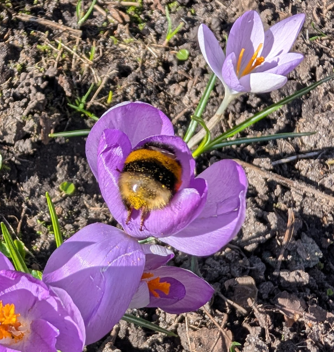 Whose rear end is peeking out of the crocus? 😍🐝 #Fieldbumblebee