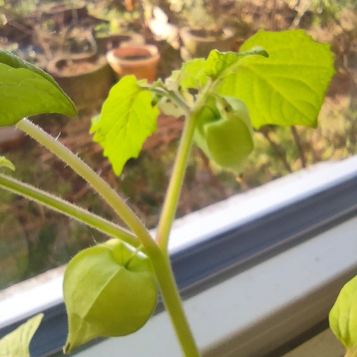 The pineapple cherries on the windowsill are blooming and bearing fruit. They seem to be in a hurry. #physalis