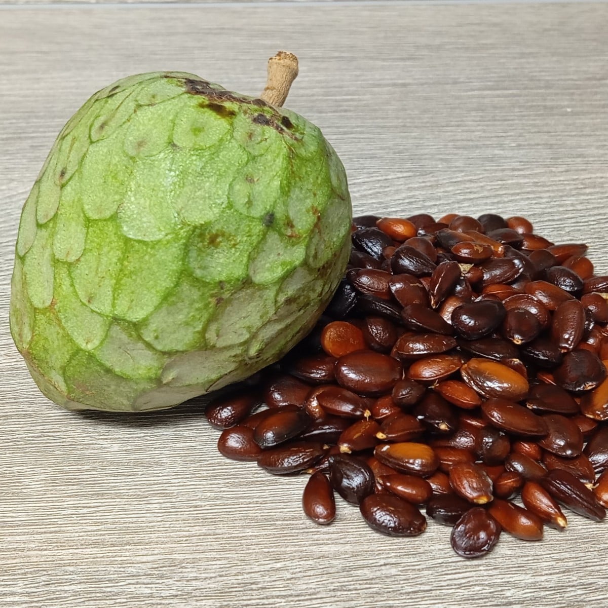 Would anyone like some cherimoya seeds? They are easy to grow as houseplants. The seeds and leaves can be used to make a remedy for pests (lice/fungus gnats) – simply grind/chop them up and soak them in water. Today I used them to make a layered dessert with pineapple, papaya, and homemade egg liqueur.