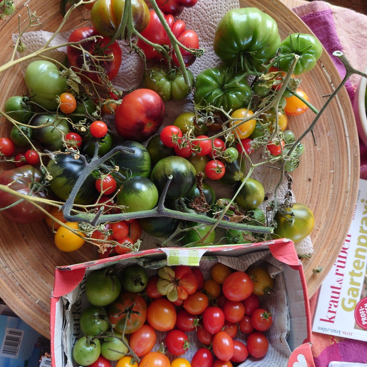 My tomatoes are ripening in the living room. The last ones are still waiting on the south wall for a bit of sun ☀️ and are getting at least a hint of pink. And the spinach sown a week ago is sprouting cotyledons - so far without any fleece over it.