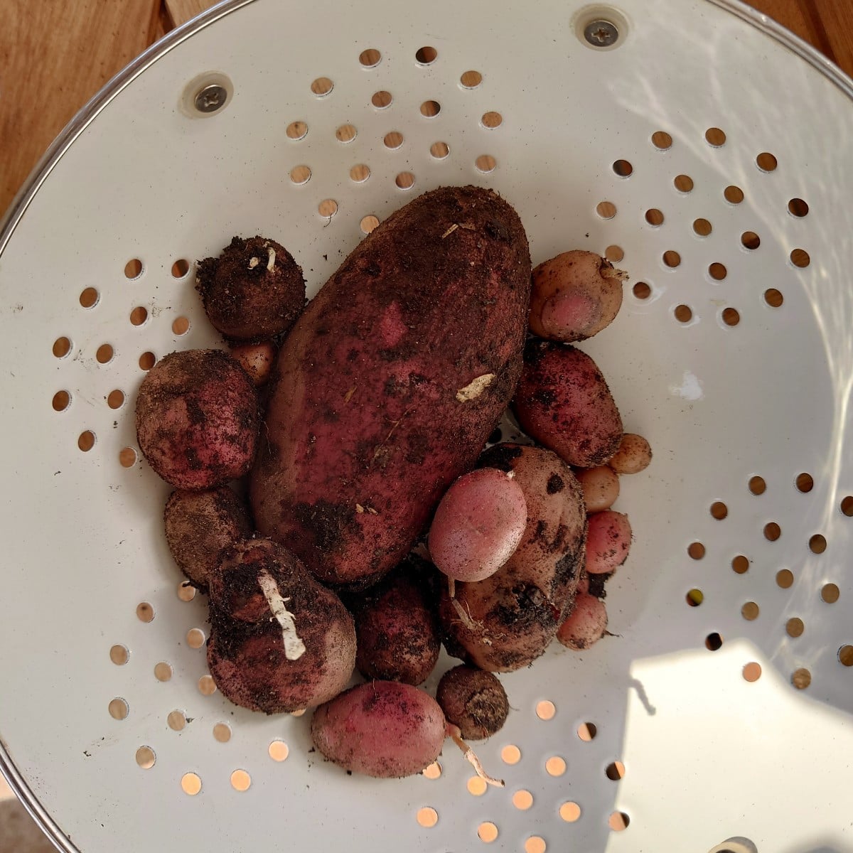 By setting up a raised bed frame and using soil from a now tattered textile bed, I was actually able to harvest potatoes again! Who says that potatoes are southern plants and cannot survive the winter? Even in the cold Eifel region, new potato plants sprout up every year where tubers had "hidden" during the autumn harvest!