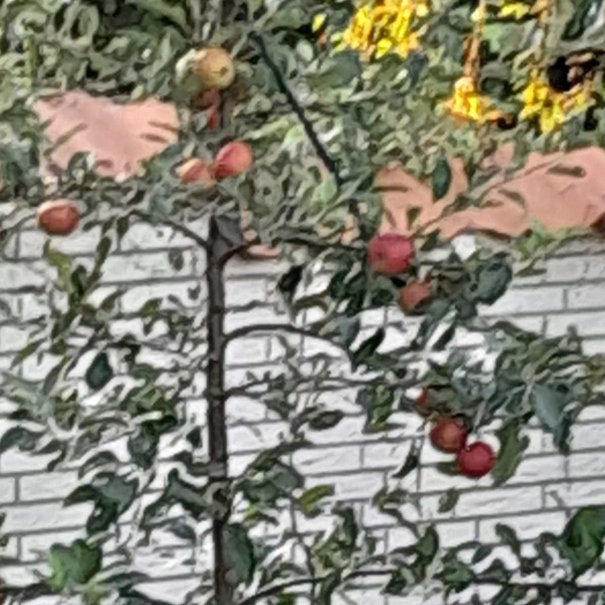 Our #heart element. We took over our garden 3 years ago after it had been "dormant" for over 20 years and looked more like a coniferous forest. There was a small apple tree among all the large trees, which were already quite broken, and the sales sign was ingrown but no longer legible. Due to the lack of light and the competition from the large trees, it hadn't grown much and bore little fruit. Unfortunately, the tree was caught during felling work on the surrounding trees. The following year, a new shoot grew, which we were convinced was a wild shoot from the rootstock - "not worth" leaving standing. The shoot stayed anyway, blossomed beautifully this year, its second spring, and gave us super tasty apples! In retrospect, we suspect that the shoot grew from the intermediate graft, perhaps a "Summer Red". Regardless of the variety, the tree grew beautifully all by itself (in our eyes) and now remains standing. Our reminder that sometimes a 2nd or 3rd chance is needed in the garden too.