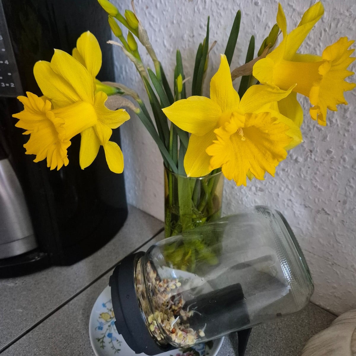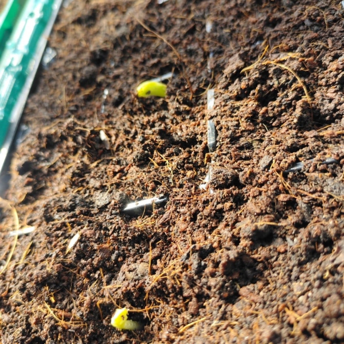 Someone here mentioned the #sugarpea #LokförareBergfälts variety. I found it kind of interesting, so I went straight out to look for some. Now the first green tips are peeking out. I’m already looking forward to tasting them 😊
