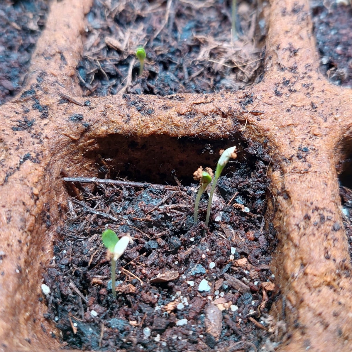 The lettuce is also coming along nicely. Only the artichoke is taking its time. But it's just as warm as the peppers. I think it's sprouting a little. Do I need to transplant it to a cooler spot? Or is it too dark for it? It only gets about 12 hours of light from the Lidl seed tray....