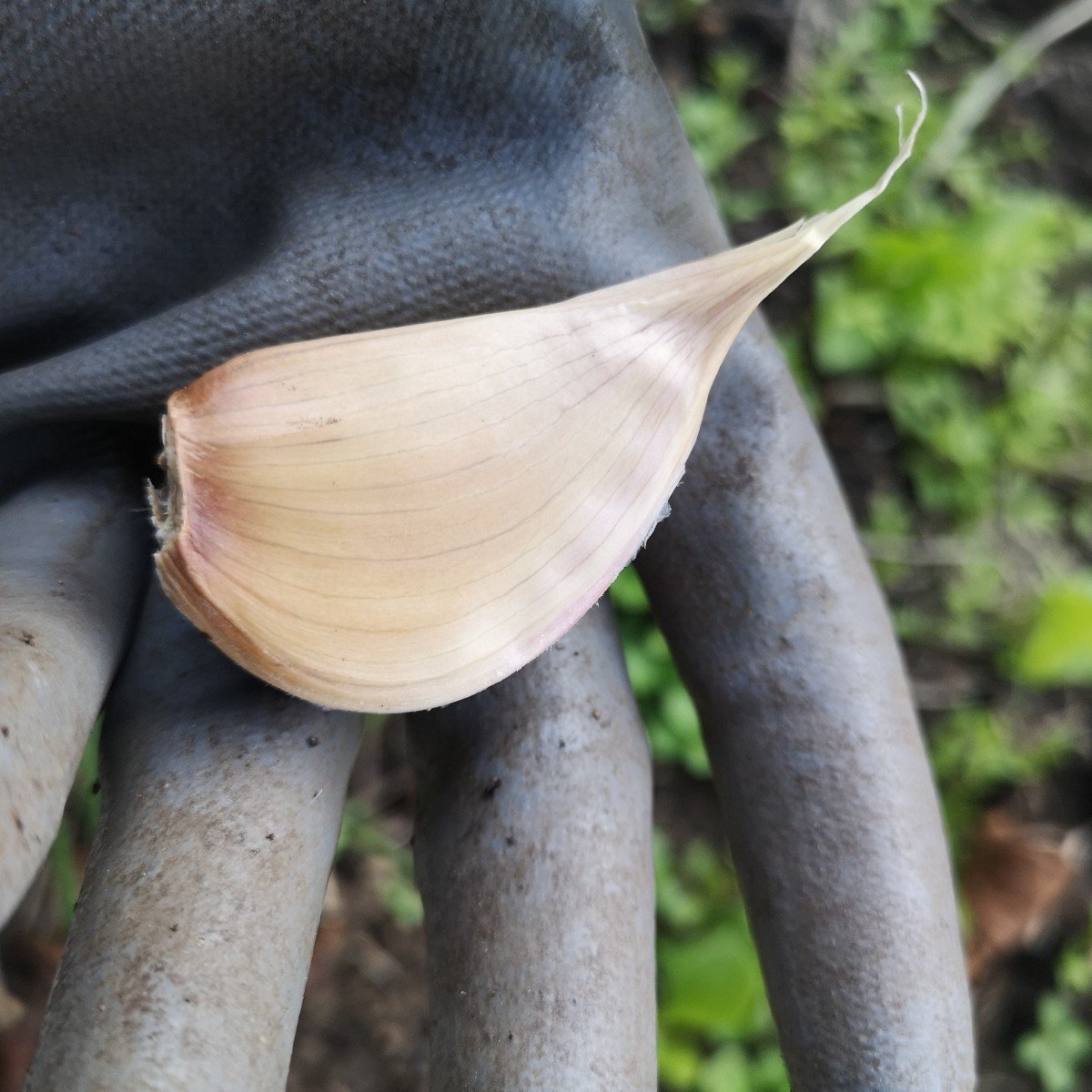 Today I planted 35 #garlic cloves of the #BarettasSunshine variety, which weighed 12g or more 😊 they were huge things. Before that, the #endive lettuce was planted out and protected from slugs with sturdy, stylish #slug collars + hood. That was a sensible investment, thanks @Reesii 😍