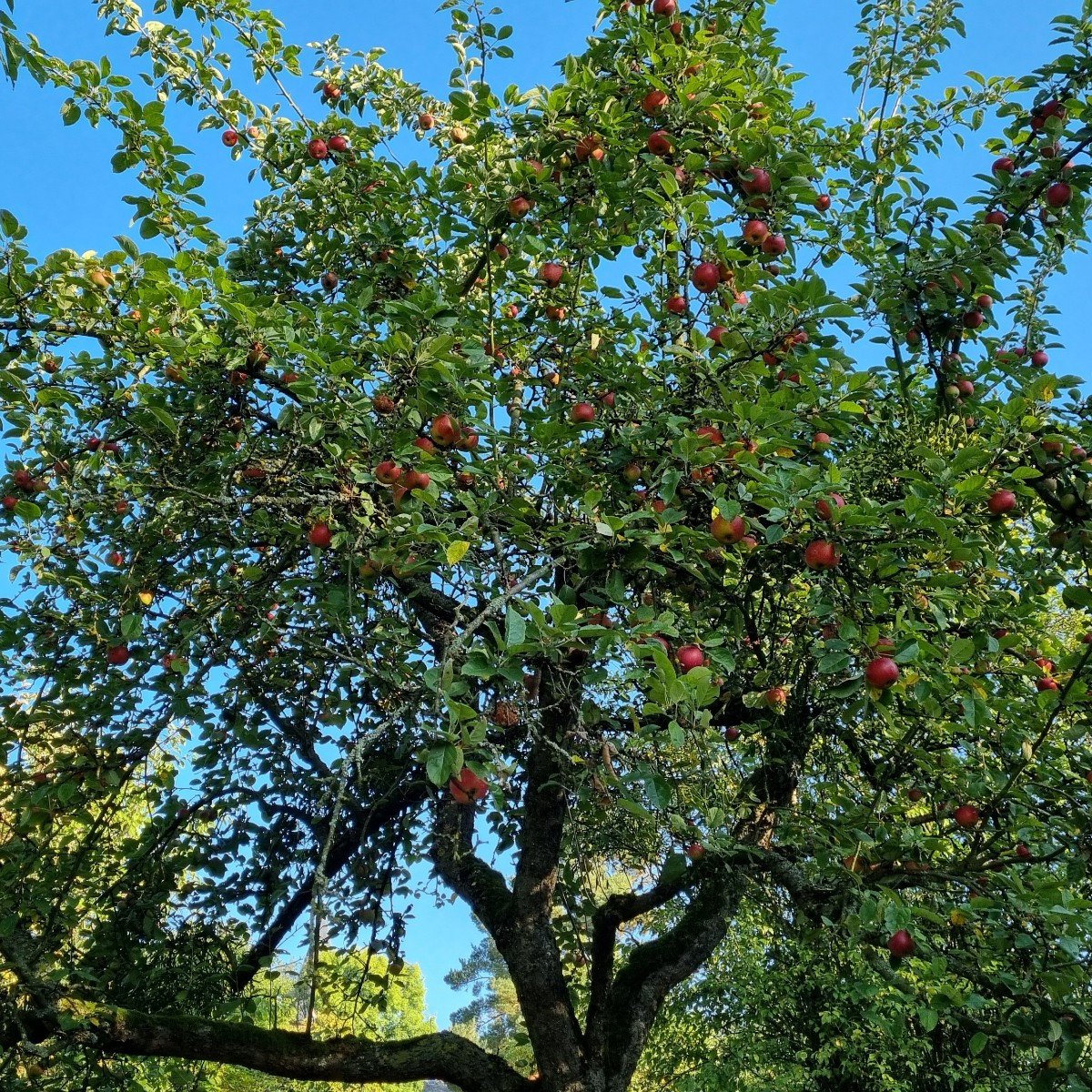 Our annual apple harvest today. #shoppinginthegarden . Together with our neighbors, we harvested 188 kg of apples from the tree in 90 minutes and drove them to our trusted wine press. It was a wonderful morning 😎 with sunshine🌞, lots of exercise, great conversations 😂 and high-quality produce. Because we also went shopping there: apple juice, mulled apple wine and various liqueurs....