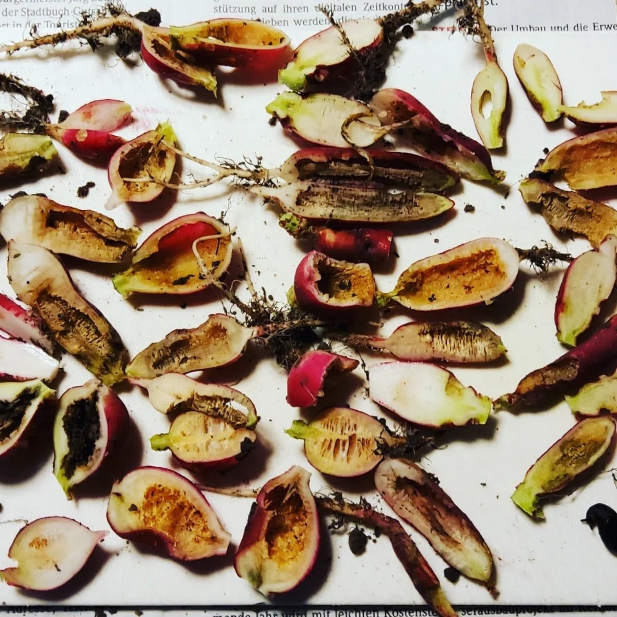 Wimmelbild mit ❓️❓️❓️ ...Na, wer entdeckt den Übeltäter ? 🤔 Zum Verständnis: mein #Radieschenüberwinterungsexperiment; wird jedenfalls nicht wiederholt 🤷