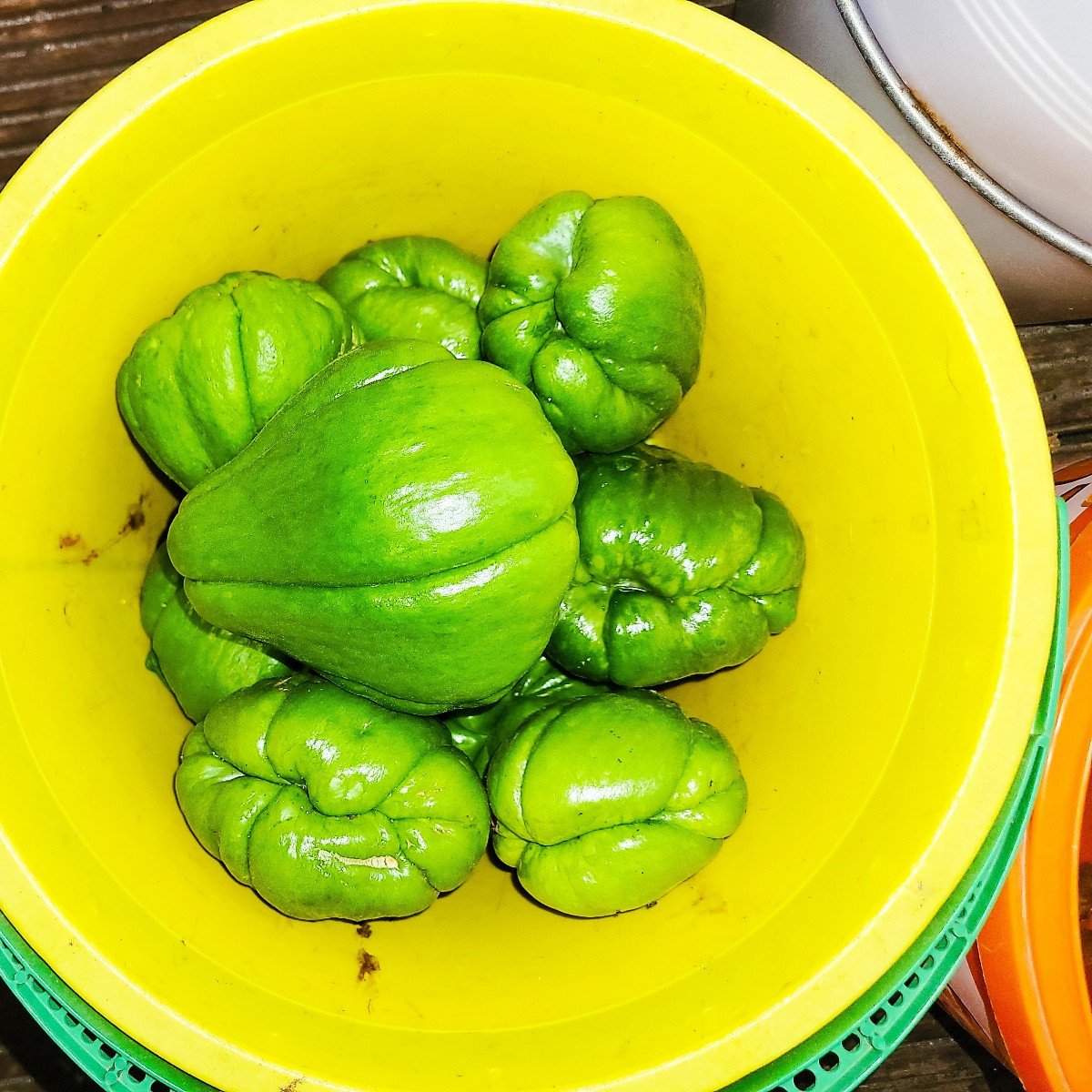 #chayote I was gifted with plenty of chayotes today, not from my plant, but from experienced chayote growers! Here comes the number 1 tip: Chayotes are better planted in groups. You had three plants yourself, as did a neighboring gardener. As a result, the stunning was great and so was the fruit yield!
