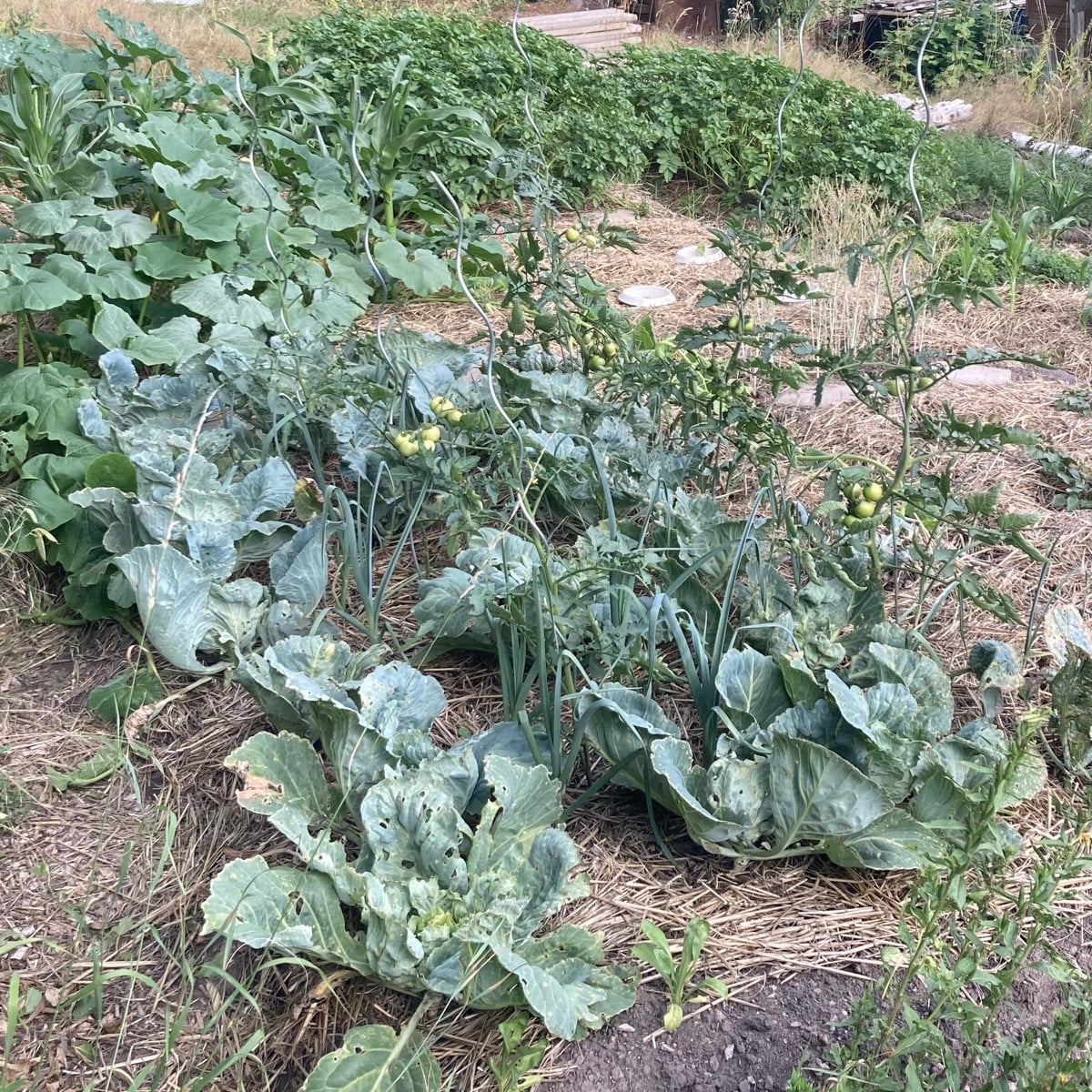 Last year, partly out of necessity—since the ancient white cabbage seeds germinated better than expected and I didn’t want to let any of the 23 white cabbage seedlings go to waste—we created two beds of cabbage, summer onions, and tomatoes. Luckily, our dear garden neighbor still had plenty of outdoor tomato plants left over, which she gave to us. The wild “Rote Murmel” tomatoes made us smile with their attempts to break into the greenhouse. And in the greenhouse, the tomatoes were really going wild anyway. But anyone can build a covered space. Only a leak in the Blumat irrigation system in the greenhouse cost us an entire IBC of rainwater and gave us a brief scare. 🥵 All in all, a thoroughly successful tomato year for us ☺️ #krautundrueben26