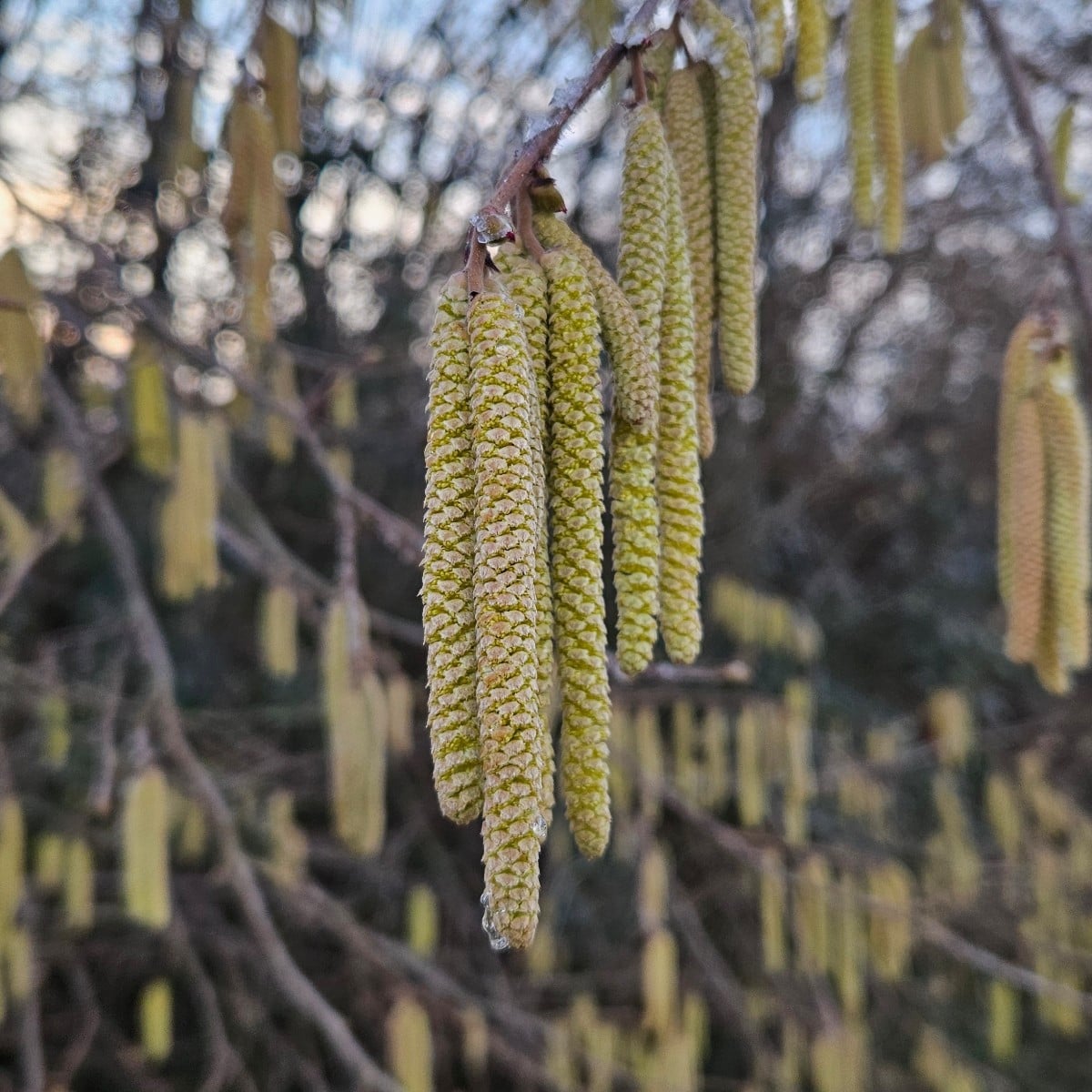 It snowed again yesterday, but the hazel blossoms are already in full bloom here #hazel #hazelnut