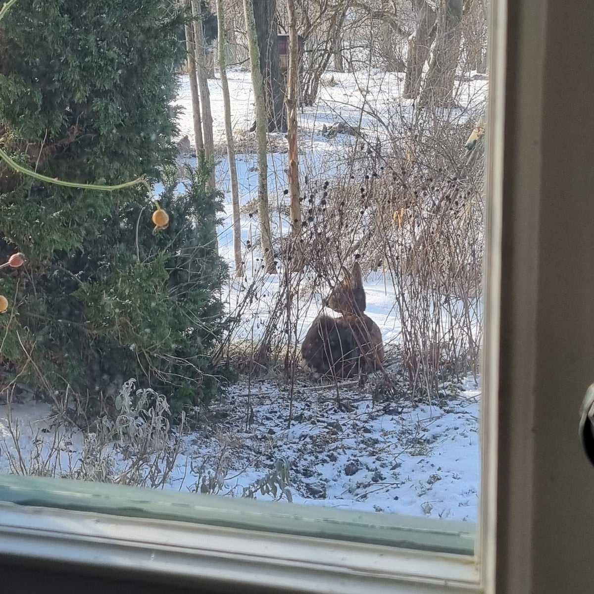When you want to get a coffee and see who's taking a break in front of the kitchen door 😅. And in the background, Mr. and Mrs. Pheasant 🙂