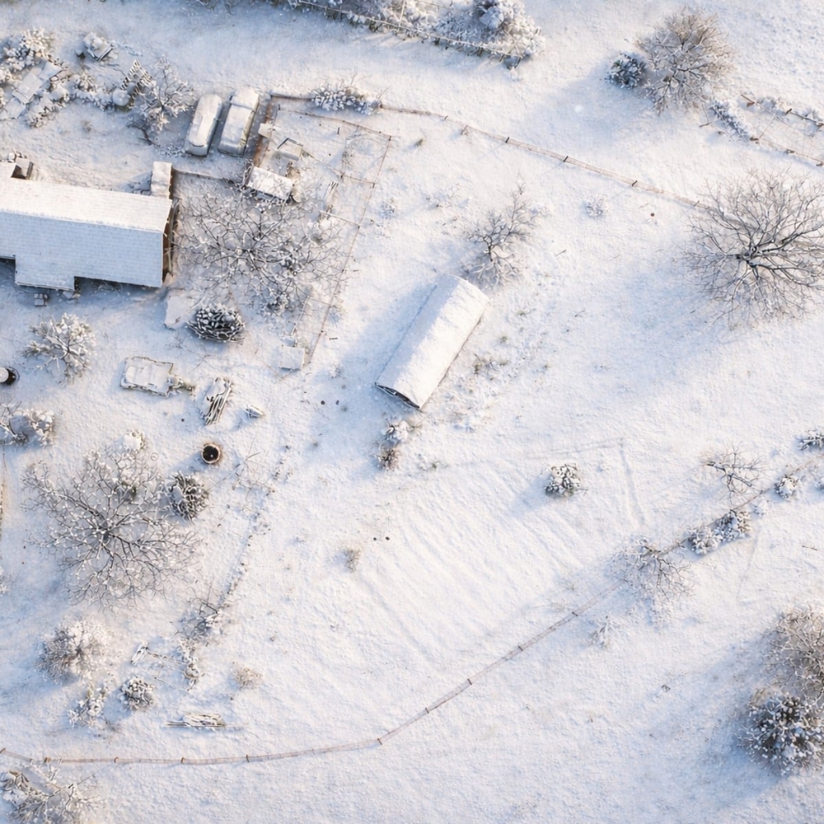 Here is an aerial view of our garden plot in winter. For #gartenstart2026, we bought a drone so we can regularly record our progress. An up-to-date bird's-eye view is also much more convenient and up-to-date than maps for planning purposes. Two years ago, there was only a meadow, a few old trees, and neglected vines here. It's definitely motivating to see the progress.
