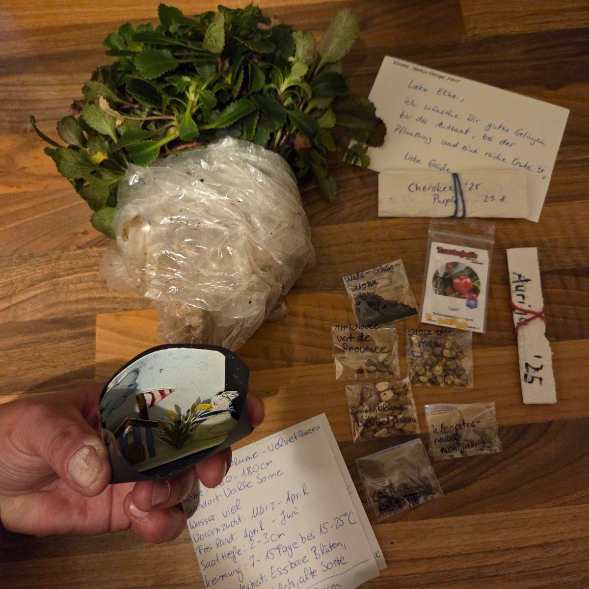 Learn MoreI got some super lovely mail today 🥰 thank you so much you sweeties 😘 I have now pulled up the kiwi with 2 shoots and have already directed one side shoot to the right. Blue tits are around so much and the jay is once again burying his acorns in my garden 🤣 And I had a stalker all day today until he finally caught and ate a mouse 🤷🏻♀️ Cut herbs today, cleared the borders of weeds, distributed faded seed heads from perennials, took seeds etc. 🤗 We'll continue tomorrow 🥰