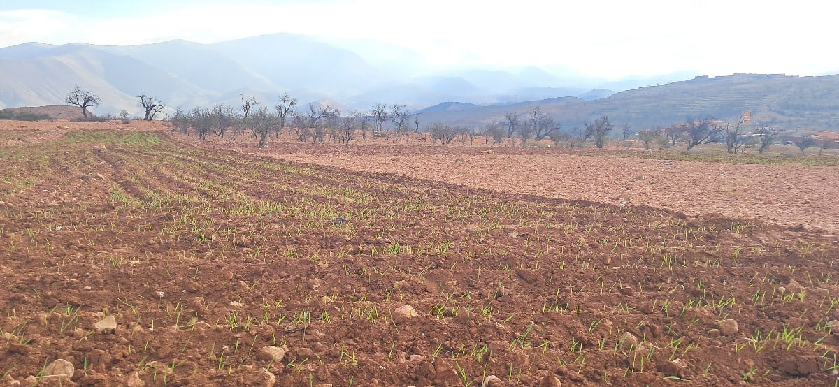These are barley seeds starting to sprout in the Atlas Mountains of Morocco, the weather right now is cool and suitable for them, there is no irrigation system in this fields, all depending on rain to grow. We had continues 7 years of droughts, hopefully it will end this year.