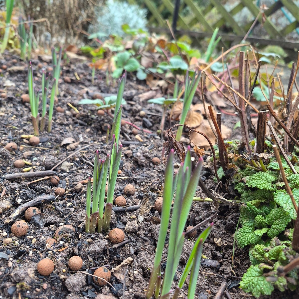 Hey everyone! The allium is already wanting to come out here 😉. Günter is also glowing in a beautiful purple color. The first flowers are already appearing on the rosemary! Everything is longing for spring! 😀. Best wishes