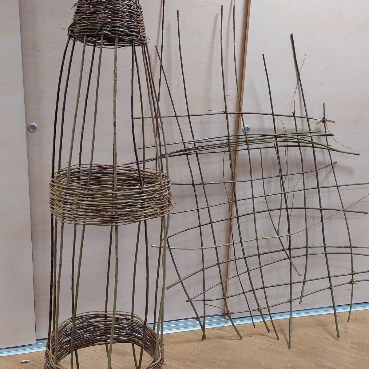 Hatte am Sonntag den VHS-Kurs "Rankhilfen aus Weidengeflecht für Balkon und Garten" Das ist das Ergebnis. Der obere Rand des oberen Bandes ist etwa Augenhöhe. Wofür würdet ihr das verwenden? Das hintere Gitter ist der unfertige Versuch eines Erbsengitters. Meine Erkenntnis: die dünnen Enden der Weidenzweige eignen sich wirklich hervorragend zum etwas festknoten. Biegsam und meistens sehr reißfest.