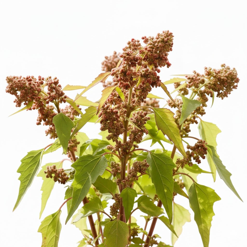 Quinoa (Chenopodium quinoa) ist eine einjährige krautige Pflanze, die ursprünglich aus den Anden Südamerikas stammt. Sie kann eine Höhe von 1 bis 2 Metern erreichen und zeichnet sich durch ihre rispenartigen Blütenstände aus, die zahlreiche kleine Samen enthalten. Diese Samen sind reich an Proteinen, Ballaststoffen und essentiellen Aminosäuren, was Quinoa zu einem wertvollen Nahrungsmittel macht. Aufgrund seiner glutenfreien Eigenschaften ist es besonders für Menschen mit Glutenunverträglichkeit geeignet.