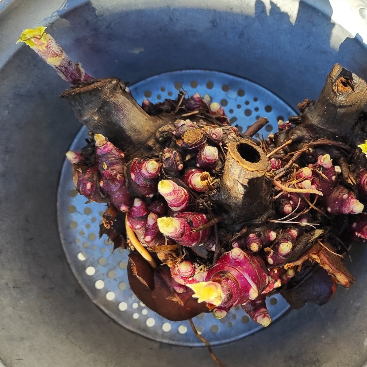 ...Ja, ich bin spät dran 🙄...aber wie bestimmt bekannt sein dürfte, hat man als Rentner einfach keine Zeit 🤷... Endlich die @yacon-138873 "Cluster" kleingeschnippelt und eingetopft...wird schon werden! 😊