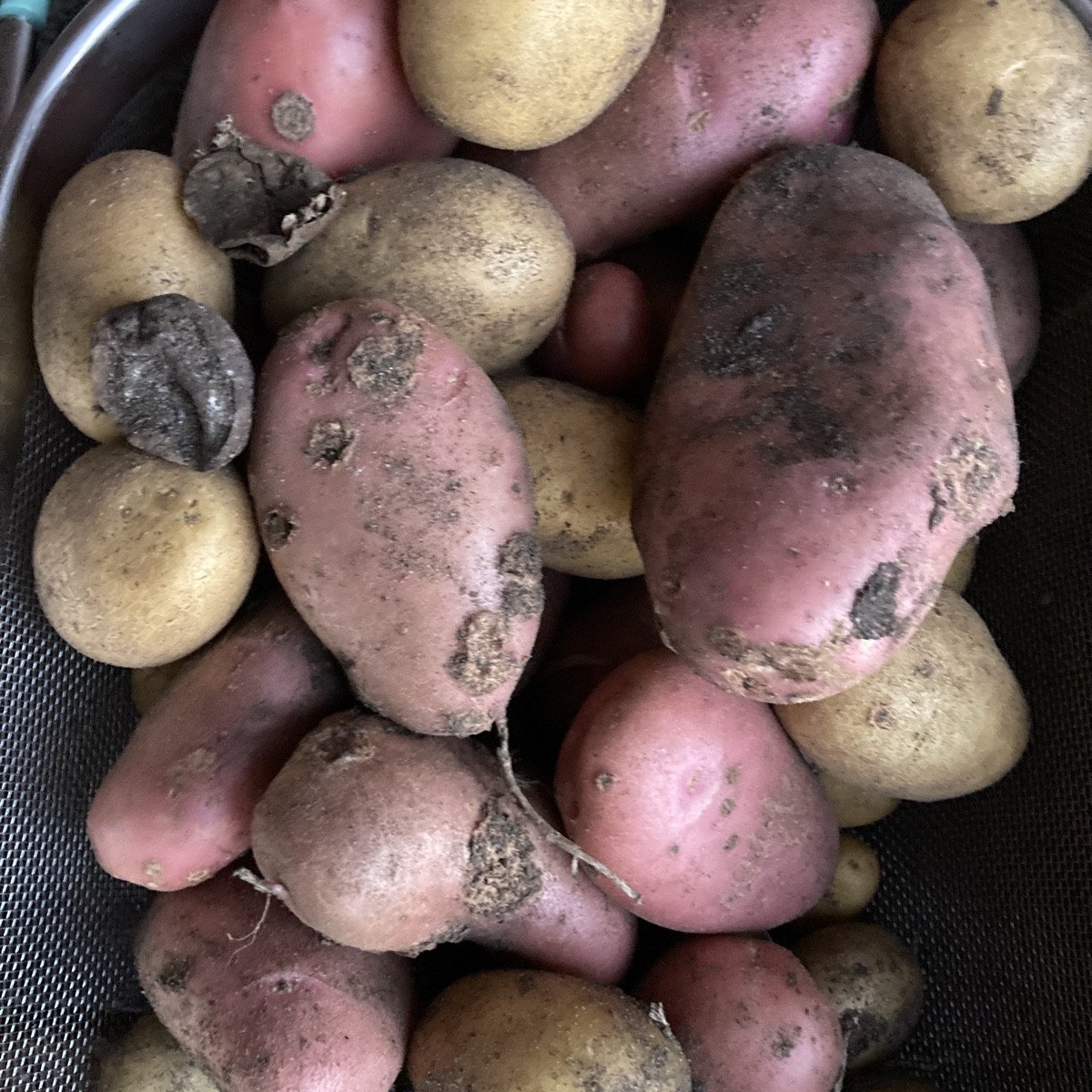 Noch ein kleines Resümee zu @kartoffel im Pflanzsack: Ich habe auf dem einen Foto auch die Saatkartoffeln zum Vergleich mit dazu gelegt. Die späten Sorten waren jetzt am besten. Es gab ca. 1,6 Kilo je Pflanzsack im Schnitt. 16,8 Kilo in 10 Säcken, die mir kaum 2qm Platz genommen haben. Ich werde nicht mehr im Boden und unter Stroh anbauen… Die Säcke habe ich mit Schafwolle, Kompost, Pflanzenkohle, Erde und Miscanthus gefüllt. Die Schafwolle war “verdaut”. #erntedank !!!