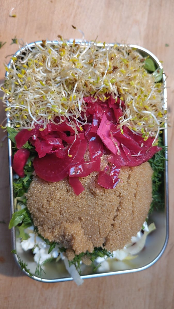 Ist zwar Grad nicht mehr das Hauptthema hier, aber schon vom farblichen Aspekt her kann ich selbst fermentiertes nur voll ans Herz legen. Das rote da ist Fermentierte Mischung aus Fenchelknolle, Meerrettich, Rettich und etwas Rotkohl. Ich freu mich jedesmal drüber wenn ich mir meinen Salat für die Arbeit fertig mache.