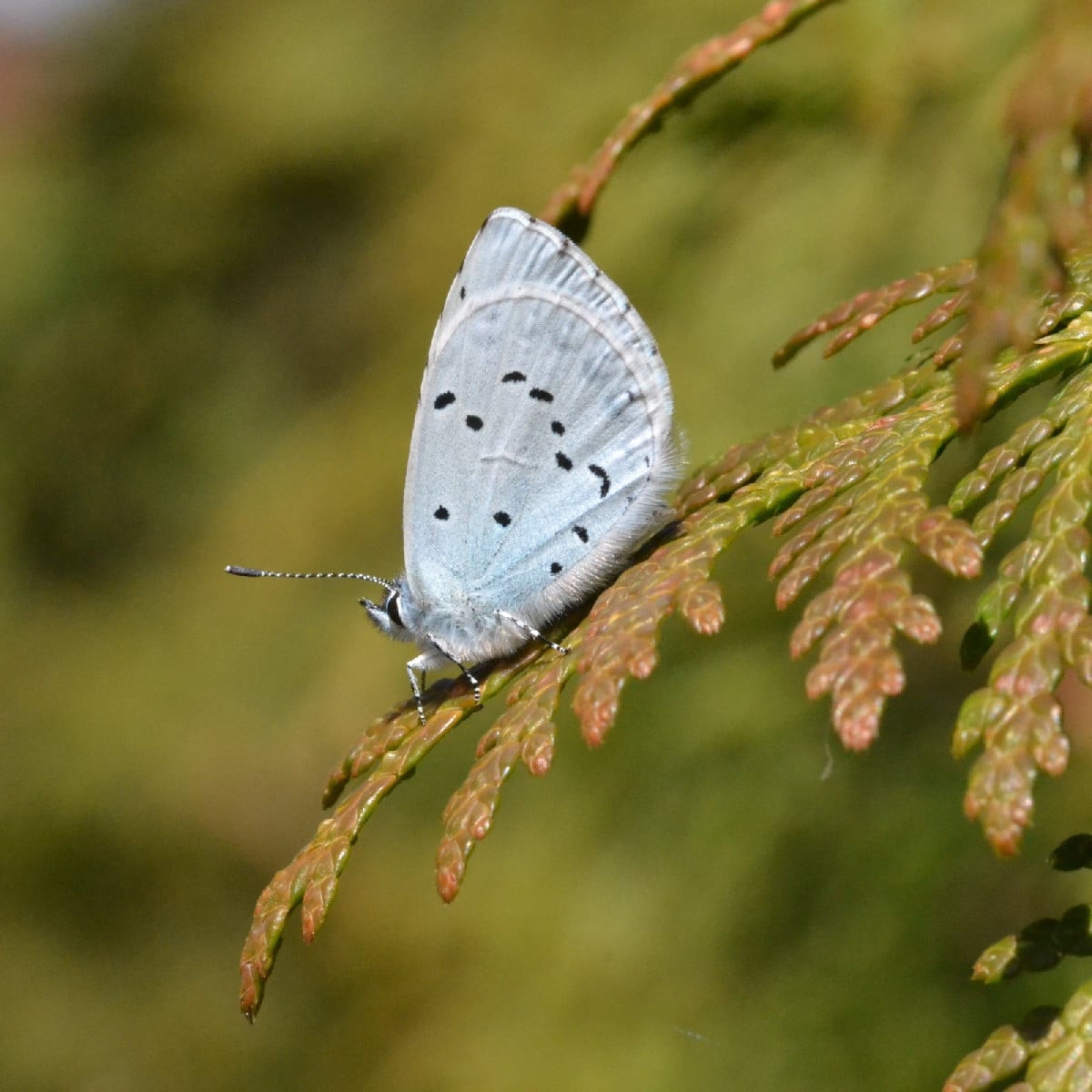 Heutige waren so einige Gartengäste flatternd unterwegs, und das, obwohl es sehr windig war! Besonders gefreut hab ich mich über den Faulbaum-Bläuling, v.a. dass ich ihn überhaupt gesehen hab; er ist wirklich sehr, sehr klein mit 2-3 cm Flügelspannweite. Die Flügel wollte er allerdings nicht ausbreiten. Tagpfauenaugen waren einige unterwegs und haben im Garten was zu tanken gefunden, auch einige Zitronenfalter; die waren allerdings alle kamerascheu... Dafür hab ich bei diesem Nachtfalter schnell auf den Auslöser gedrückt, bevor auch er flugs davon war. Obsidentify sagt, es sei ein Dunkelgrauer oder ein Graubrauner Eckflügelspanner - eine Neuentdeckung in unserem Garten 😀 Dann gab's noch einige Siebenpunkt-Marienkäfer; dieser hier hat Bekanntschaft mit einer Spinne, einem Laufwolf, gemacht. Nachdem sie sich eine Weile betastet und vielleicht berochen hatten (das war interessant zu beobachten), sind beide wieder ihres Wegs gegangen. Und dann war da noch diese kleine Wildbiene auf dem Gänseblümchen, vielleicht eine Sandbiene, das Bienchen in der Waldsteinieblüte könnte die erste Rostrote Mauerbiene sein, die ich in diesem Jahr gesehen hab. Und dann ist da noch diese Braune Randwanze, die hat sich direkt vor mein Objektiv gesetzt und wollte auch fotografiert werden - ist aber auch wirklich ein Hingucker 😁