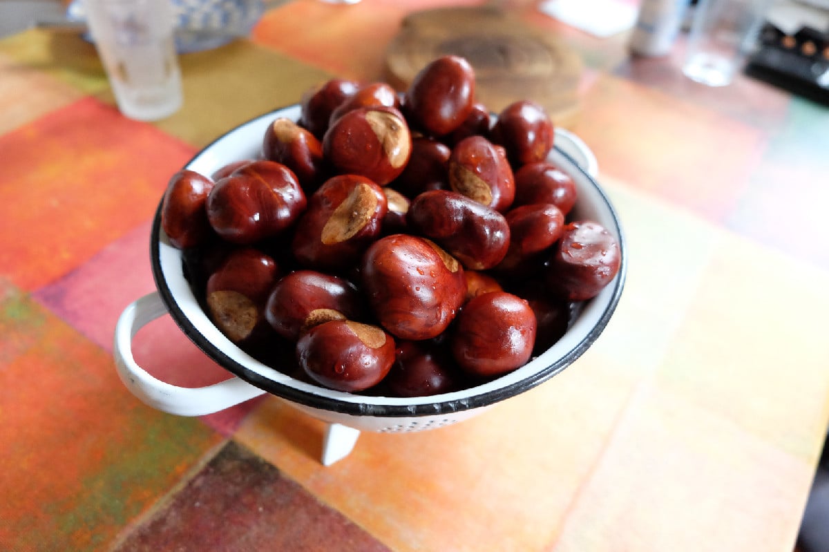 Hinter unserer Wohnsiedlung stehen zwei Kastanienbäume, die aufgelistet sind beim Verzeichnis "essbare Stadt" als Esskastanie. Freudig habe ich also Kastanien gesammelt, bin jetzt aber doch verunsichert, ob sie essbar sind, denn sie sehen aus wie Rosskastanien?! Esskastanien (bei Maronen ist das jedenfalls so) haben an sich viele feine Stacheln, Rosskastanien wenige aber größere. Diese hier hat überhaupt keine, die Fruchthülle erinnert eher an Walnüsse. Das Laub haben die Bäume schon verloren und was darunter liegt, hat sich mit anderen Blättern vermischt, aber nichts davon sieht nach der klassisch fünfblättrigen Form aus. Auch der Stamm erinnert nicht an Rosskastanie, die ich als zerklüfteter in Erinnerung habe. Habt ihr eine Idee dazu?!