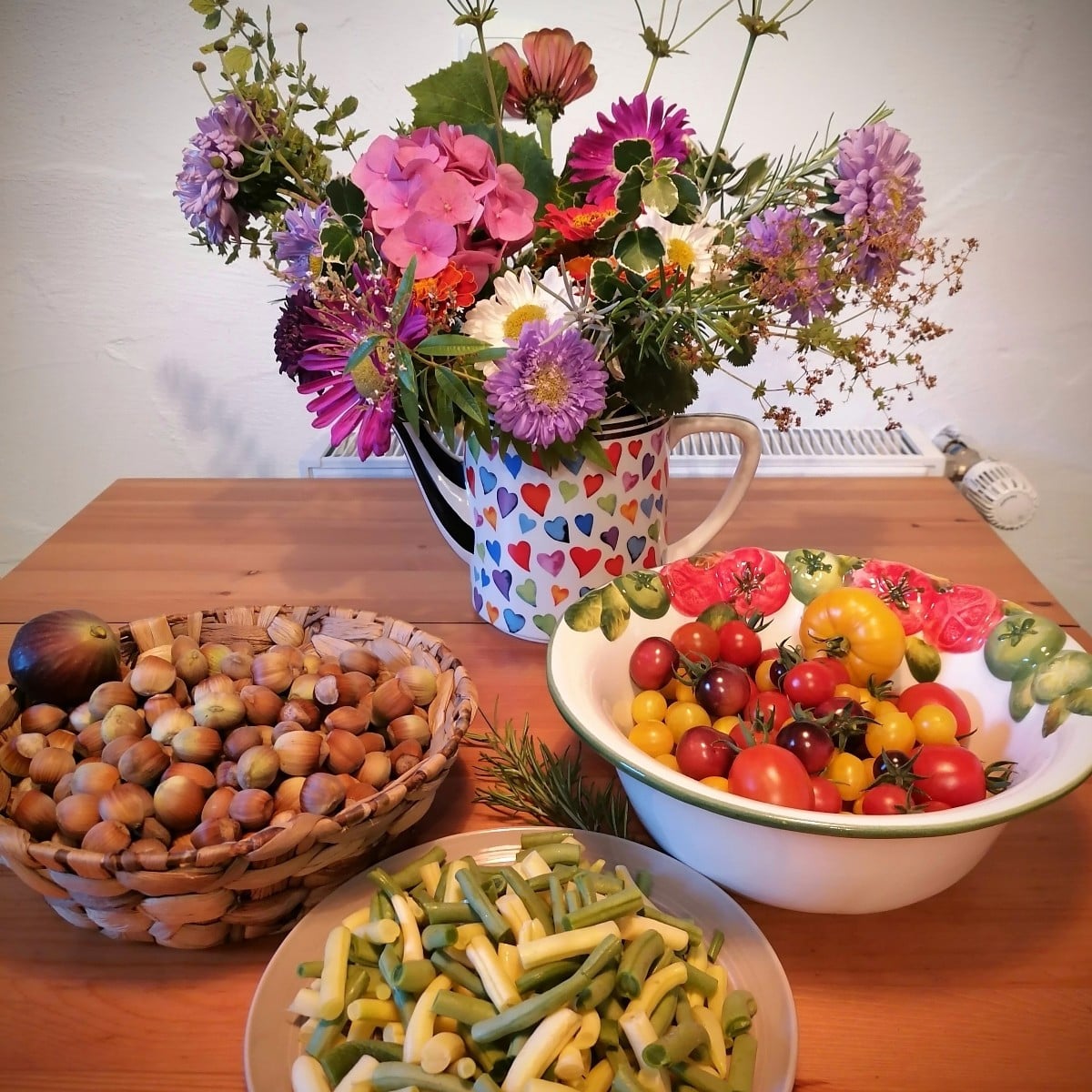 Im #Herbst war alles noch so schön bunt und jetzt hat der #Winter den Garten fest im Griff. Alles weiß, die einzigen Farbtupfer bringen die Vögel an der Futterstelle.