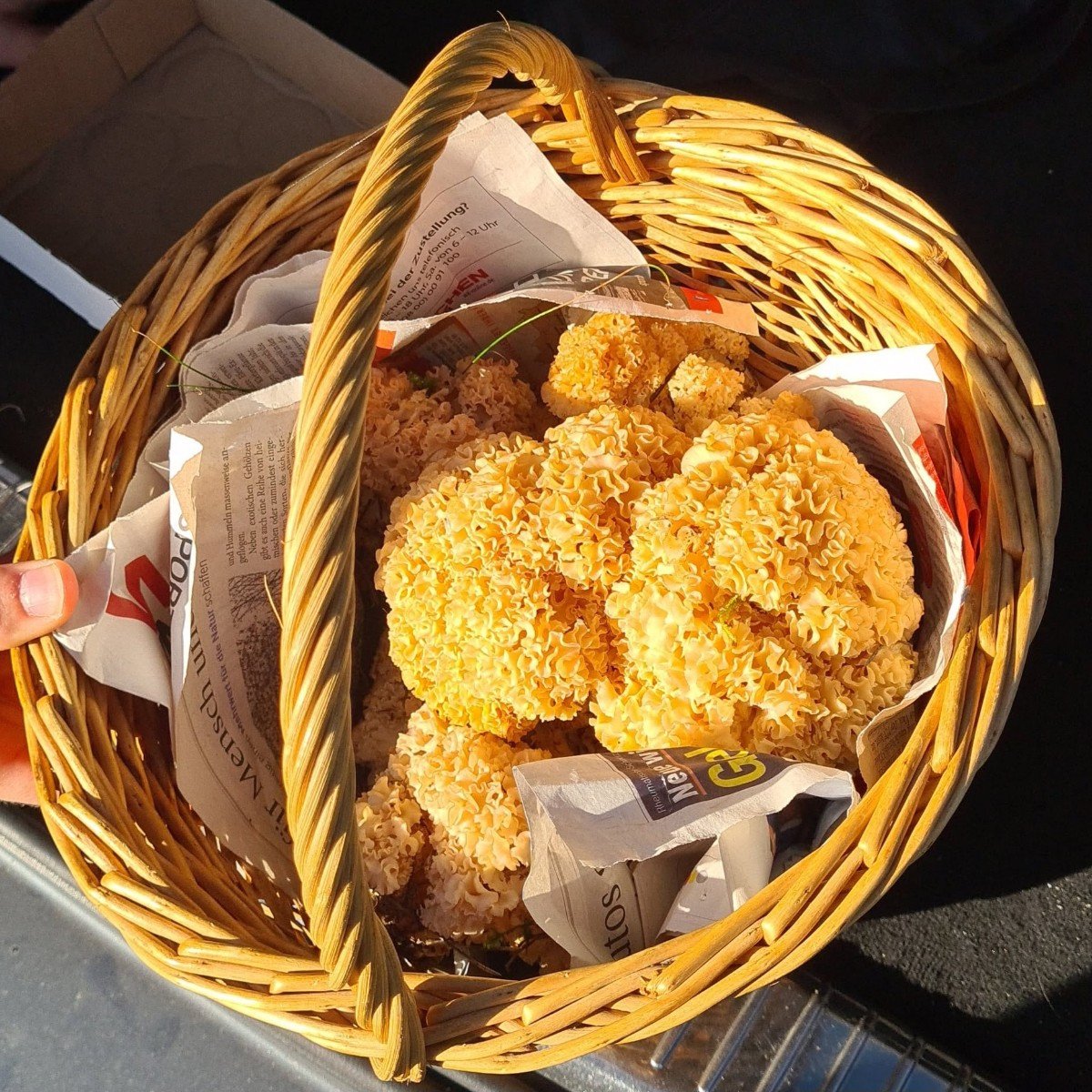 Dieses Jahr waren wir das erste Mal Pilze sammeln. Einen vollen Korb Krause Glucke konnten wir mitnehmen. 🍄🍂