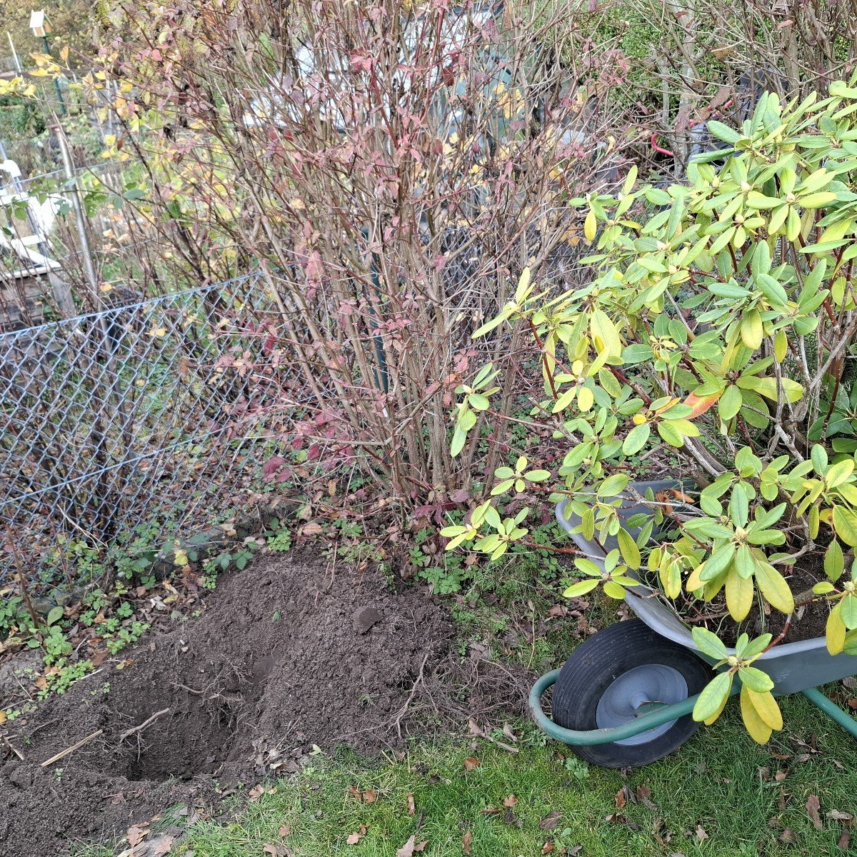 Letzte Arbeiten im #Kleingarten stehen an wie hier als Beispiel die Versetzung des #Rhododendron 😰