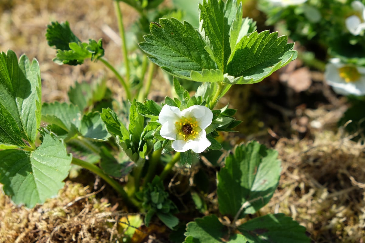 Wenn Erdbeerblüten so dunkel in der Mitte werden, haben sie einen Frostschaden. Dann lohnt es sich (auch wenn es zunächst schwer fällt), sie auszuknipsen. Die Erdbeerpflanze bildet dann recht schnell neue Blüten aus. #erdbeeren