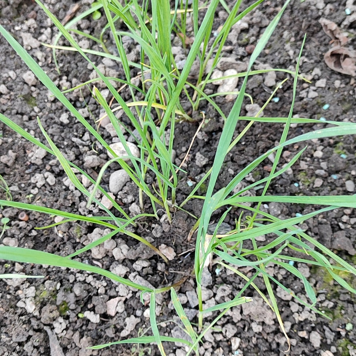 ... am 1. 10. 25 habe ich diese @Knoblauchbulbillen ausgesät... Und nein, es sind keine Gräser!, alles kleine Knofelbabies... Möchte endlich mal diesem 3 jährigen Knoblauchmysterium auf den Grund gehen, vielleicht auch mit der Hoffnung, gegen #Knoblauchrost widerstandsfähige Pflanzen zu erhalten. 🤷... Die direkt daneben, am selben Tag gesteckten Zehen sind jedenfalls schon wieder stark befallen... 🙄