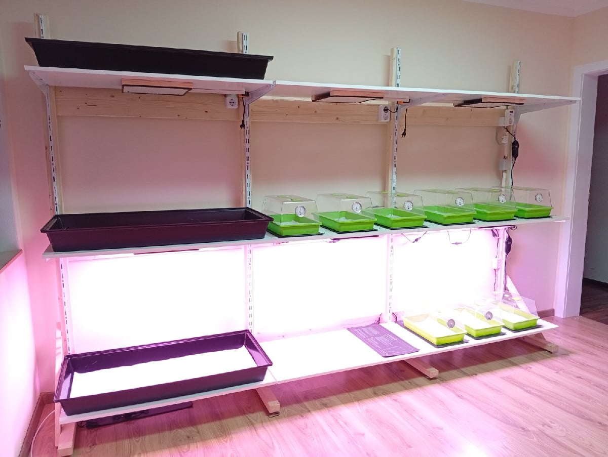 Nun kann es bald losgehen mit der Anzucht! Da letztes Jahr der Platz für unsere Pflänzchen zu knapp wurde, haben wir jetzt ein neues, flexibles und relativ leicht demontierbares Regalsystem gebaut. Die Regalböden sind in der Höhe verstellbar. Die Heizmatten kann man individuell bis zu 6 Stück an einem Regler kombinieren. Die großen Schalen sind schon für die pikierten Pflänzchen vorgesehen. An der mittleren und oberen Regalreihe sind je drei Vollspektrum-Panelleuchten angebracht, die auch einzeln schaltbar sind. In die Schalen haben wir Kapillarmatten gelegt, in der Hoffnung, die Trauermücken etwas zu dezimieren, da wir letztes Jahr davon sehr viele hatten. Hat damit schon jemand Erfahrungen gesammelt?