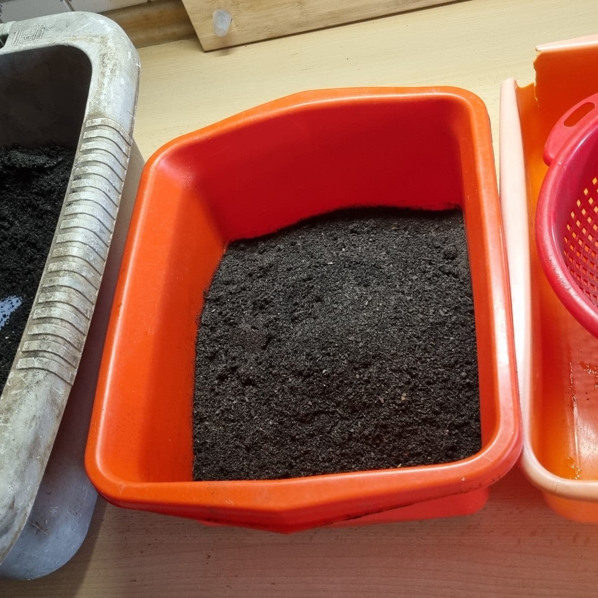 Mmmmhhhh - watt lecker 😋 Erdauflauf aus der Mikrowelle 🤪 Habe jetzt mal ausprobiert, die Aussaaterde in der Mikrowelle zu dämpfen. Dazu habe ich Erde vom letzten Jahr (benutzt und Rest aus Beuteln) erstmal durchgesiebt. Ein normales Küchensieb brachte das Ergebnis, dss ich mir als 'richtig' vorstelle. Dann das gesiebte Ergebnis mit Wasser versorgt, bis es etwa die Feuchtigkeit von gerade verwendetem Kaffeemehl hatte ('Aufgussfeucht' ^^) und dann portionsweise in einer Auflaufform in der Mikrowelle erhitzt - 2x 5Minuten bei 900 Watt, dazwischen einmal umrühren, um die Hitze gleichmäßig zu verteilen (damit das unfallfrei klappt, hab ich die Auflaufform zu ca 2/3 gefüllt). Haptisch überzeugt mich das Ergebnis: feinkrümelige Erde mit etwas Struktur, die dennoch bei Feuchtigkeit 'Bindung' entwickelt. Ich denke mal, dass, sollten da irgendwelche Viecher drin gelebt haben, diese jetzt nicht mehr leben... ob das auch für Pilzsporen gilt? Ich hoffe mal. Den Geruch beim Dämpfen fand ich jetzt nicht so prickelnd... hat n bisschen was von Kompostwerk - lüften bitte 😅 Jedenfalls kann es jetzt bald losgehen 🥰 Für die nächste Ladung will ich mal das Dämpfen mit dem Dampfentsafter versuchen. Den könnte ich dann auch nach draußen stellen (kein Geruch im Haus 👍), ich könnte eine größere Menge in einem Durchgang verarbeiten und ich müsste nicht zwischendurch umrühren - hätte also weniger Arbeit damit... So jedenfalls meine Idee... Hat das schon mal jemand von Euch ausprobiert?
