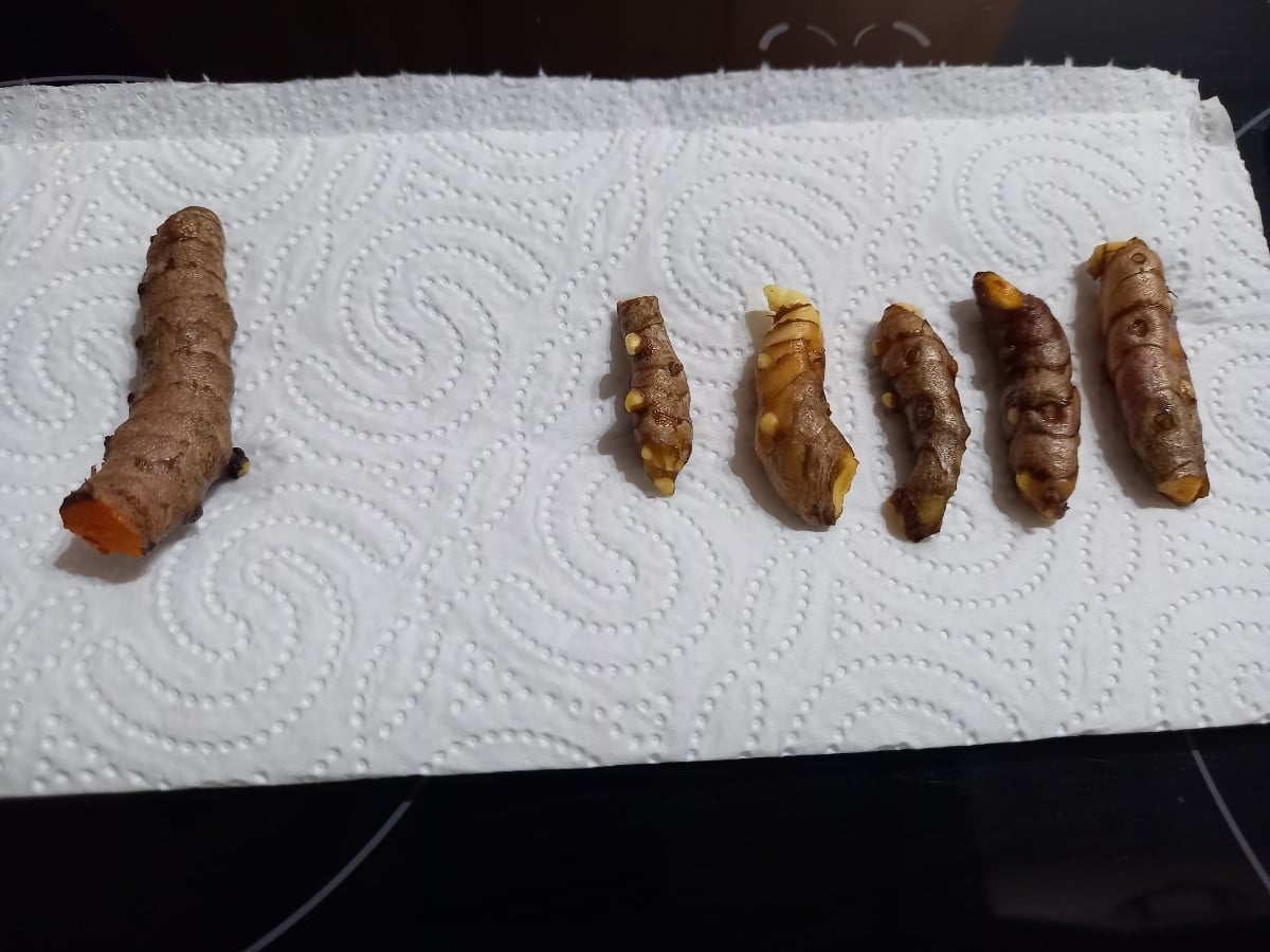 Hallo Leute, Ich habe heute nach fast einem Jahr meine Kurkumapflanze aus dem Blumentopf der bei uns auf dem Fensterbrett stand rausgeholt. Ich finde, für einen 14x14 Topf ohne besondere Pflege, ist schon nicht schlecht. Links der Mutterrhizom der auch noch essbar ist.