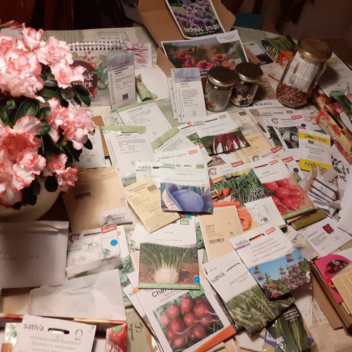 Neues Jahr - Neues Gartenglück! Was für ein Chaos! Es hat mal so sortiert klein angefangen :))! Gekauftes, geschenkt Bekommenes und selbst Fabriziertes... Ich wünsche uns allen viel Spaß und Freude beim Gärtnern!