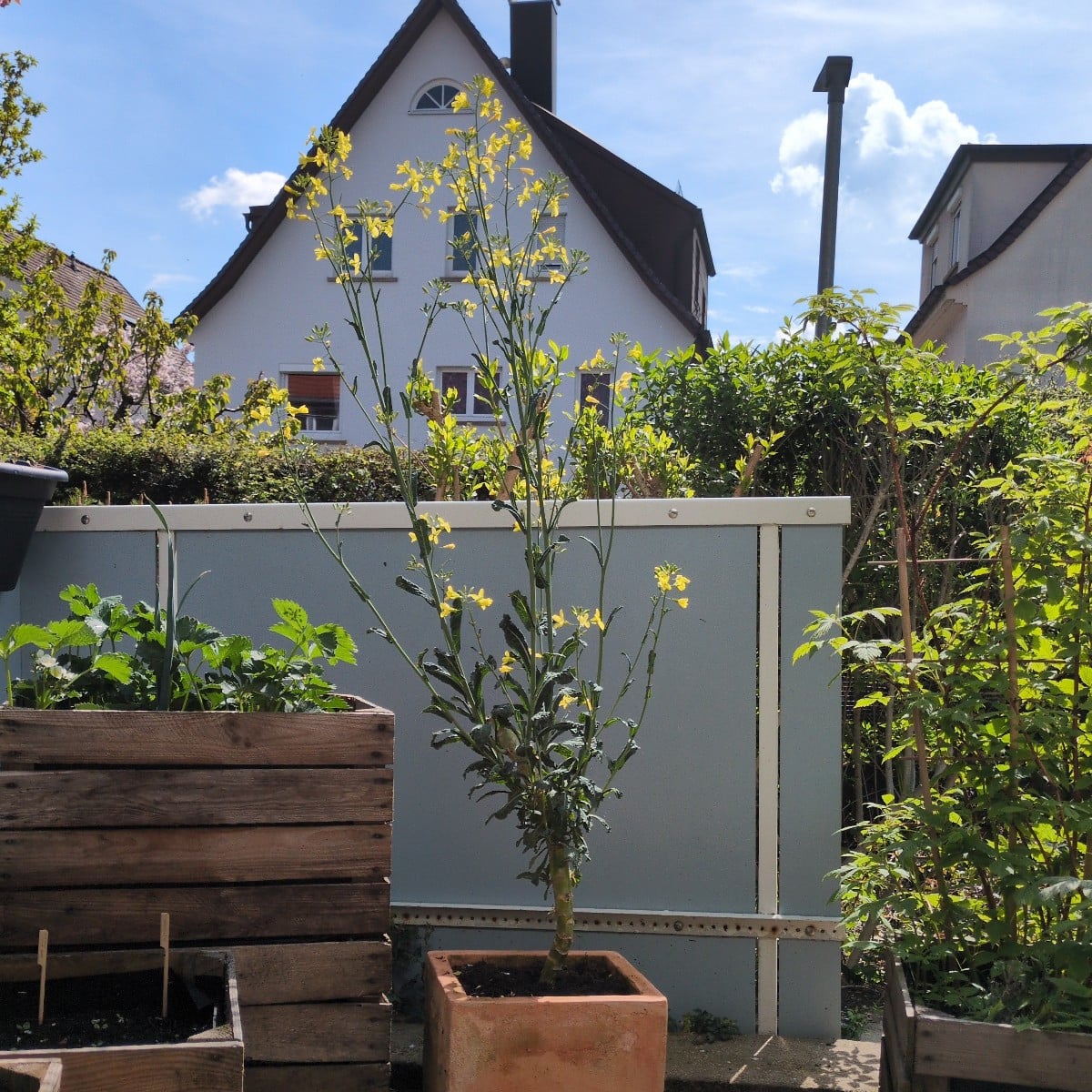 Mein Palmkohl aus dem letzten Jahr blüht wunderschön und die Bienchen erfreuen sich mit mir daran 🥰