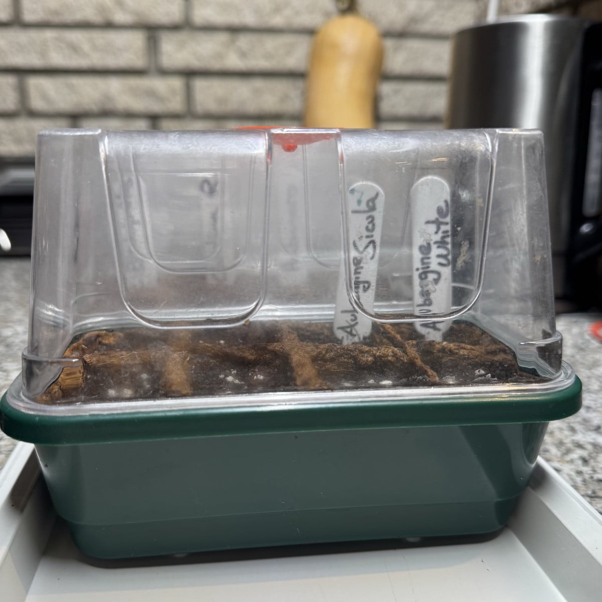 Unsere zwei Lieblingsauberginen sind jetzt in der Erde. Mädels, wir können nicht ohne euch – also bitte anstrengen! 🍆😄🌱