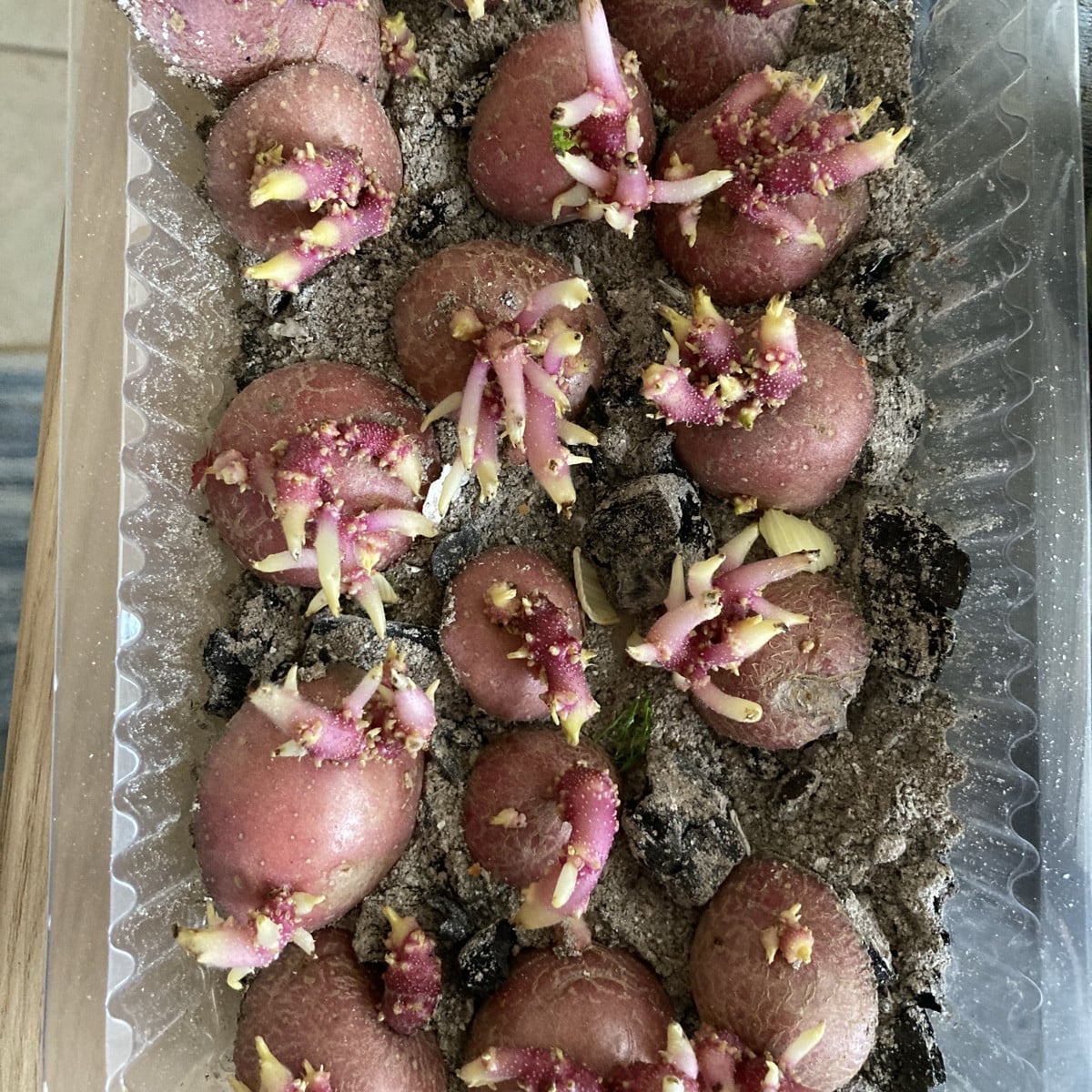 Ich wollte doch keine Kartoffeln mehr… Mit 24 Säcken würde es eigentlich genügen? Aber diese konnte ich nicht opfern. Sie wurden mit Asche desinfiziert und trocknen jetzt noch ein, zwei Tage nach. Dann muss ich wohl 4 m im Beet dafür einplanen. 🤷🏻♀️🙈🤦🏽♀️